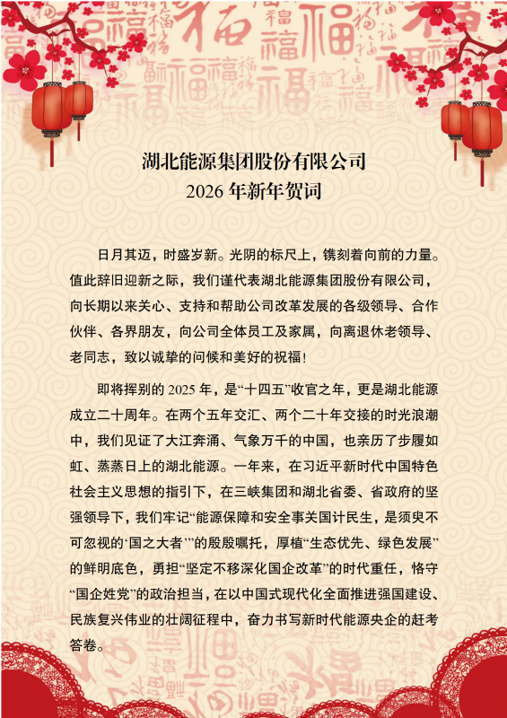 湖北能源集團(tuán)股份有限公司2026年新年賀詞